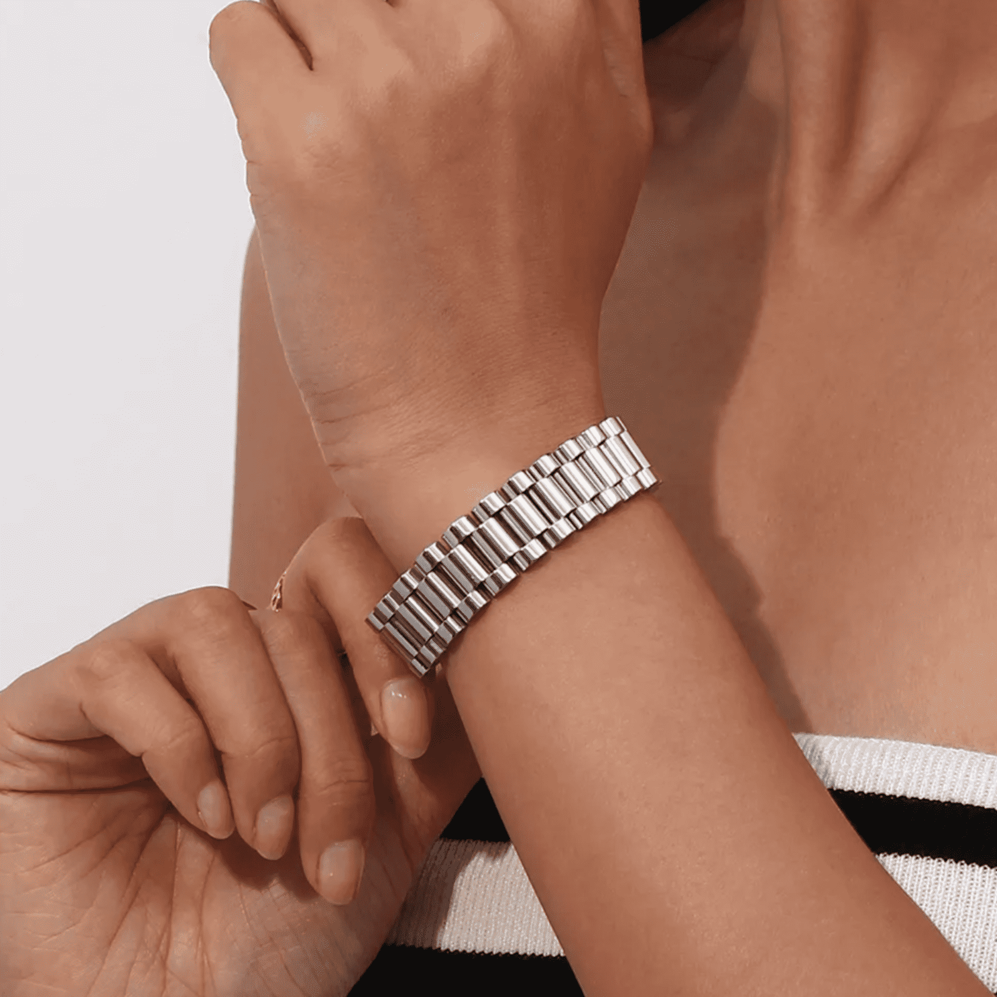 Watch Chain Bracelet 15mm in White Gold